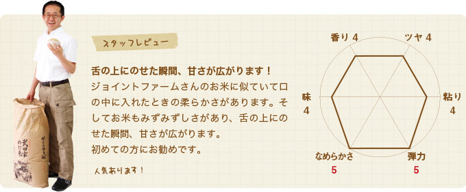 栃尾は、日本一の有名米「魚沼」の隣村で。そこで「魚沼を追い越せ!」を合言葉に、意気込みのある”根性農家”が育てたお米です。魚沼のすぐ隣だから、自然環境も気候も似ているため、味も保証付き!当店の中でも人気の高い銘柄です。